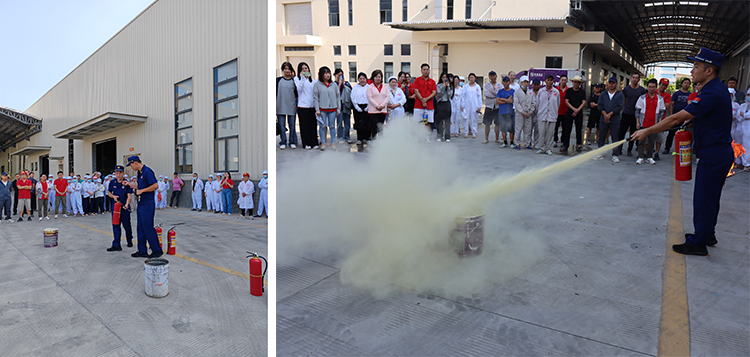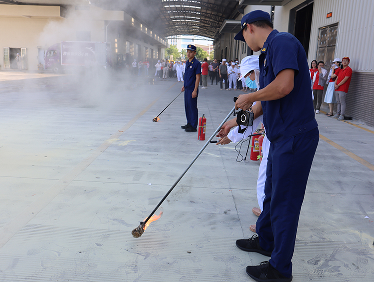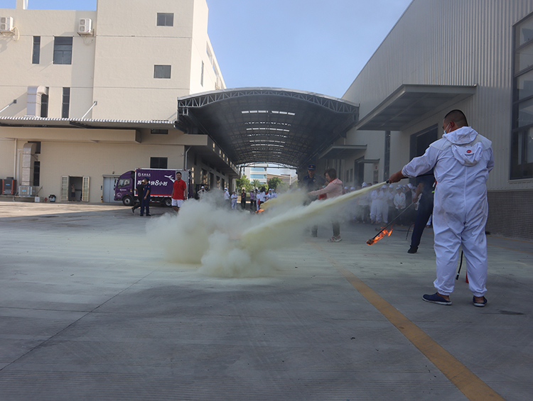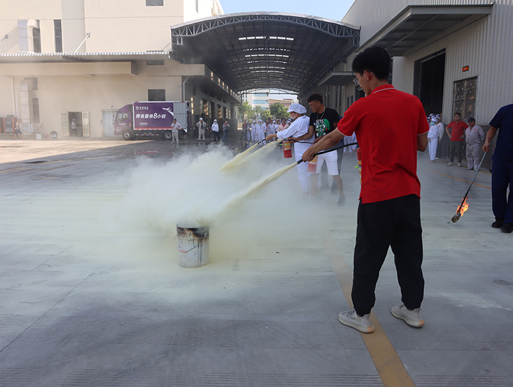 掌握正確使用方法后,所有員工在安全距離進行實操消防滅火器滅火。