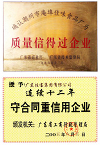 佳寶的經(jīng)營宗旨是:質(zhì)量為本、誠實守信。廣東佳寶集團有限公司自1993年以來,連續(xù)12年被廣東省工商行政管理局評為“守信用重合同企業(yè)”。